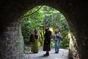 The Rookery is a new North-East based folk trio comprised of Eleanor Kerr on vocals and violin, Poppy Bedford on vocals and Bodhran, and Emma Doenges on vocals and guitar; they perform traditional songs and tunes as well as their own pieces, usually based on mythology, the supernatural or birds.